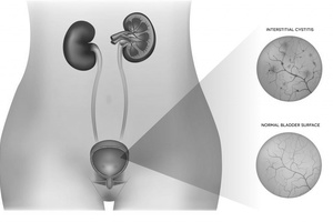 Интерстициальный цистит — это неинфекционное воспаление мочевого пузыря. Это не специфическое заболевание, а, скорее, симптомокомплекс или синдром мочевого пузыря. У пациентов имеются ирритативные симптомы при мочеиспускании (т. е. позывы на мочеиспускание, учащенное мочеиспускание, никтурия, дизурия), которые обусловлены уменьшением объема мочевого пузыря и болями, возникающими при его наполнении (обычно купирующимися при опорожнении мочевого пузыря) Культуральный анализ мочи и цитологическое исследование при этой патологии отрицательны, не выявляется какая-либо другая урологическая патология, которой могут быть обусловлены болезненные симптомы.
